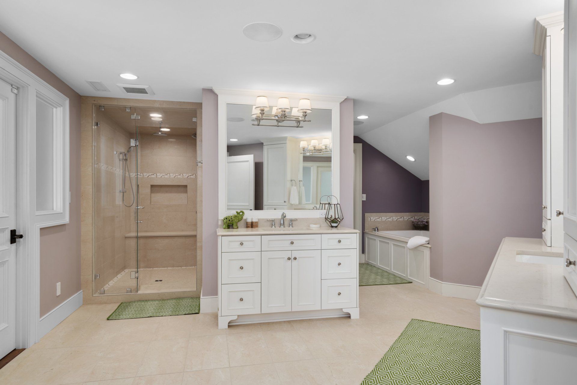 - Resort like master bath with tv, double vanities, jetted jacuzzi tub, glassed in oversized